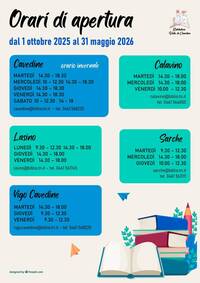 fino al 31 maggio prossimo la biblioteca di Cavedine torna all'orario invernale: