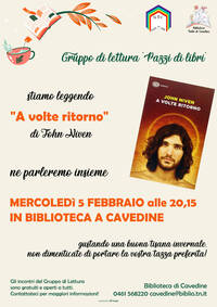 mercoledì 5 febbraio alle 20,15 il gruppo di lettura s'incontra in biblioteca a Cavedine per parlare dell'ultimo libro letto "A volte ritorno" di John Niven.