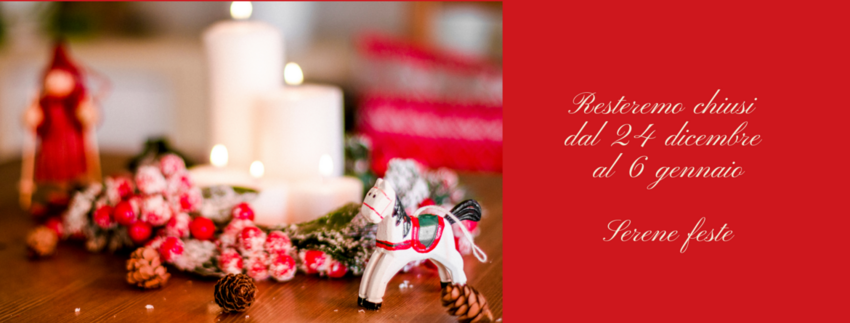 Si avvisa la gentile utenza che tutte le sedi resteranno chiuse da giovedì 24 dicembre al 6 gennaio.Auguriamo a tutti un sereno Natale e buone feste.Ci rivediamo in gennaio.