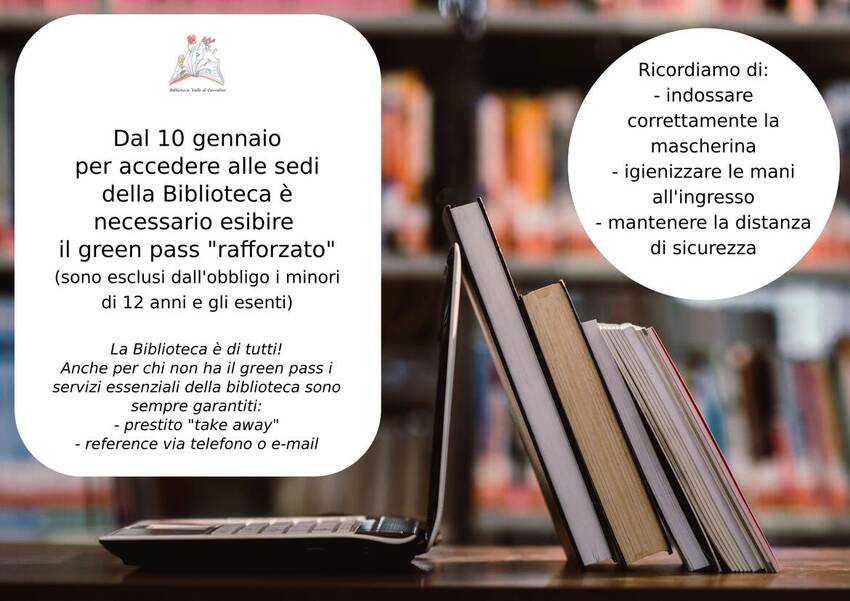 Da lunedì 10 gennaio l'accesso alle sedi di biblioteca è consentito solo con Green Pass Rafforzato.
