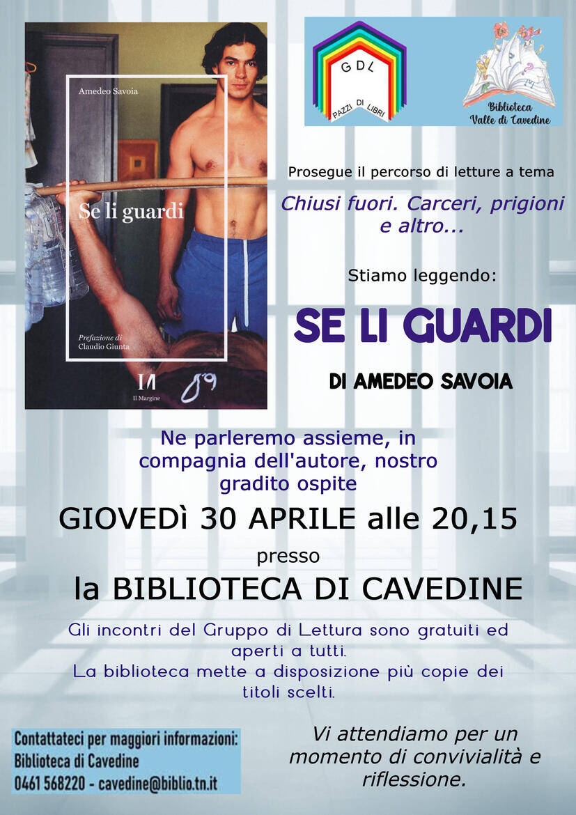 Giovedì 30 aprile ore 20.15 biblioteca di Cavedine.Stiamo leggendo il libro Se li guardi: racconti di persone finite in carcere di Amedeo Savoia.All'incontro sarà presente l'autore.