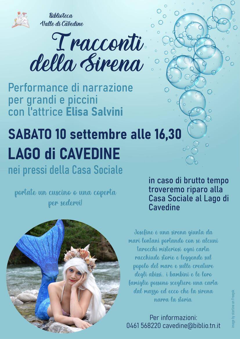 Performance di narrazione per grandi e piccini sabato 10 settembre alle ore 16.30 al Lago di Cavedine con l'attrice Elisa Salvini.
