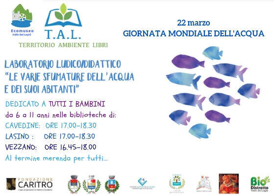 In occasione della Giornata internazionale dell'acqua, il 22 marzo le nostre sedi di Cavedine e Lasino ospitano il laboratorio "Le varie sfumature dell'acqua e i suoi abitanti" a cura di Ecomuseo della Valle dei Laghi.