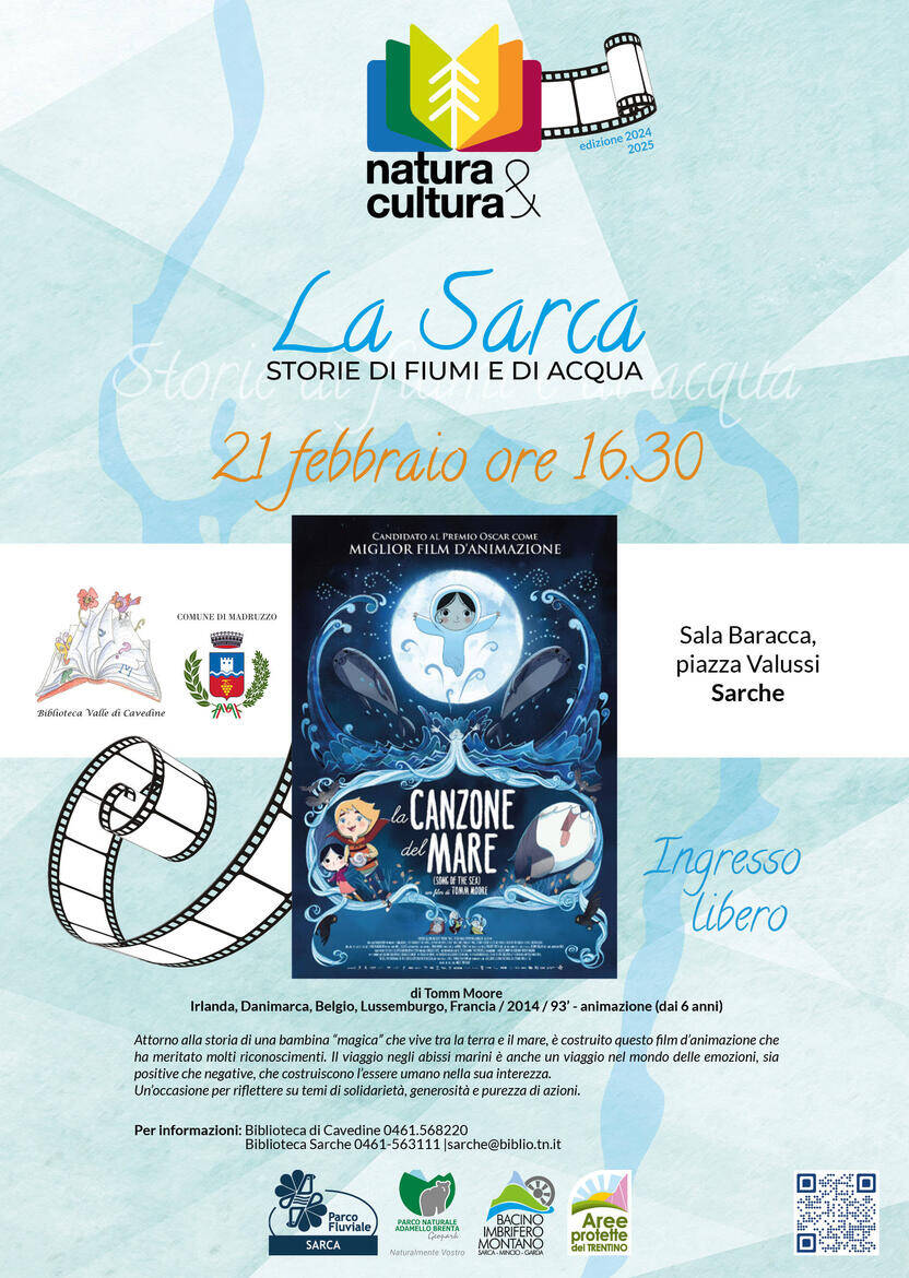 venerdì 21 febbraio ore 16.30 presso la Sala Baracca a Sarche proiezione del film per famiglie "La canzone del mare"