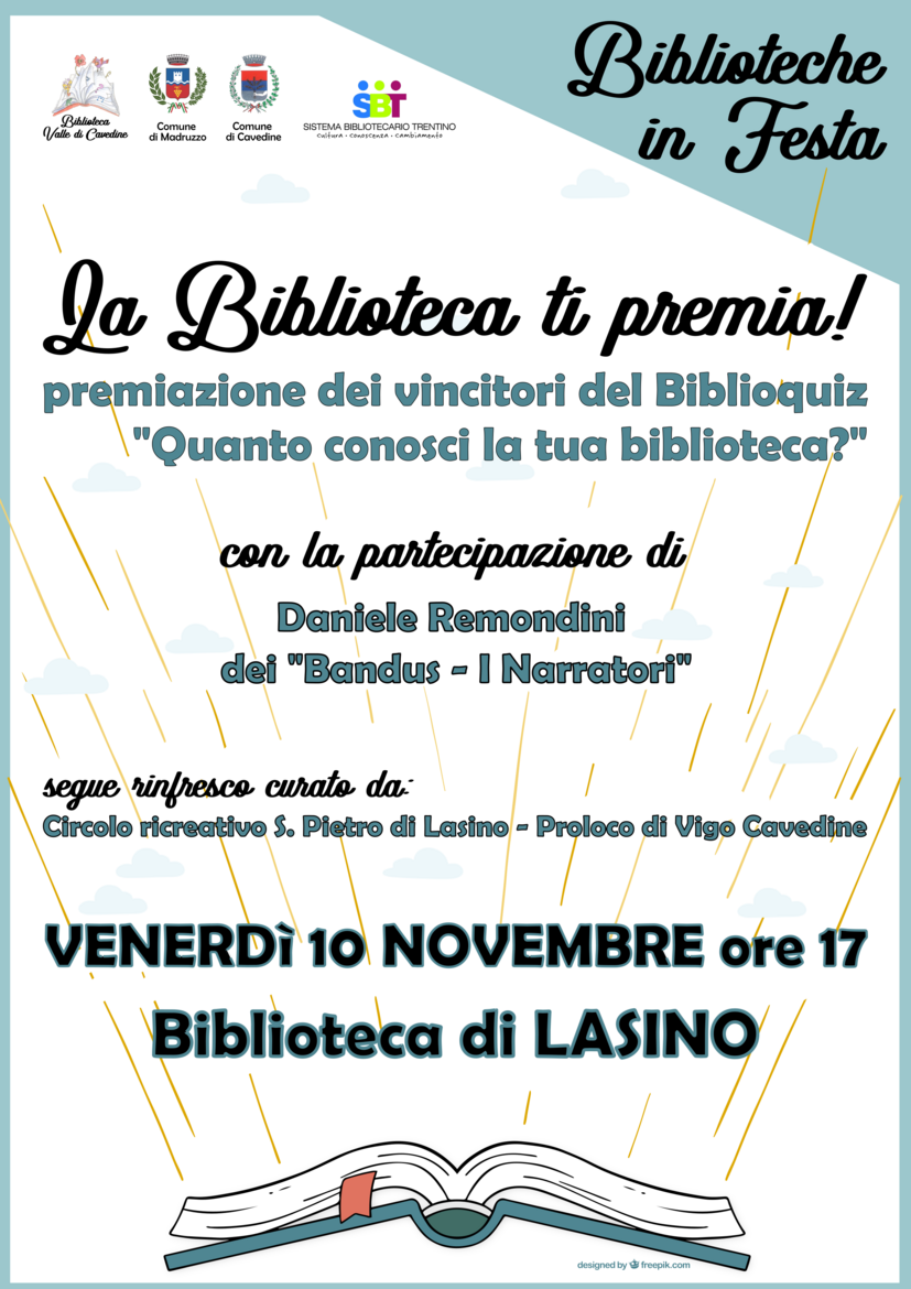 Seguirà rinfresco per tutti i presenti, curato dal Circolo ricreativo culturale S. Pietro di Lasino e dalla Proloco di Vigo Cavedine