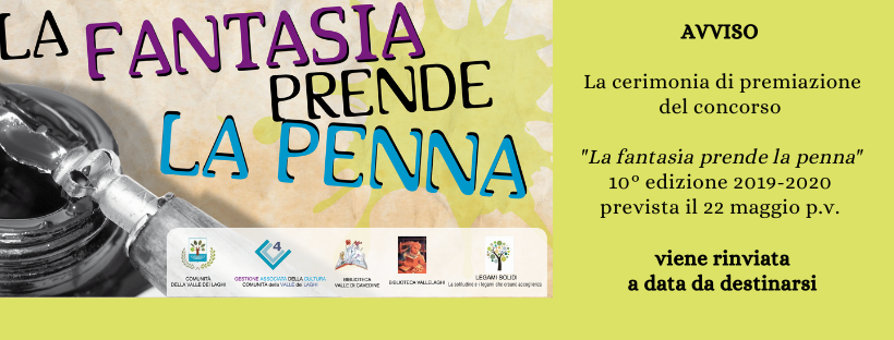 La cerimonia di premiazione del concorso prevista al teatro Valle dei Laghi il 22 maggio p.v. alle ore 20.00 viene rinviata a data da destinarsi