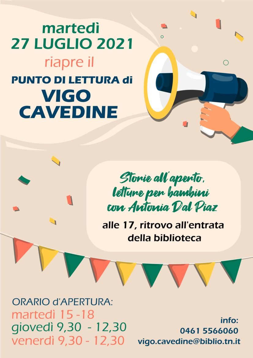 Martedì 27 luglio riapre nuovamente al pubblico la sede di Vigo Cavedine.