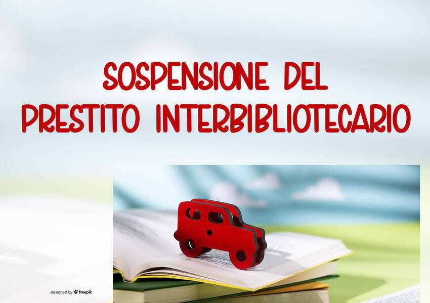 Vi avvisiamo che, per cause indipendenti dall'organizzazione e dalla volontà della Biblioteca e fino a nuova comunicazione, il prestito tra le biblioteche della provincia è sospeso.