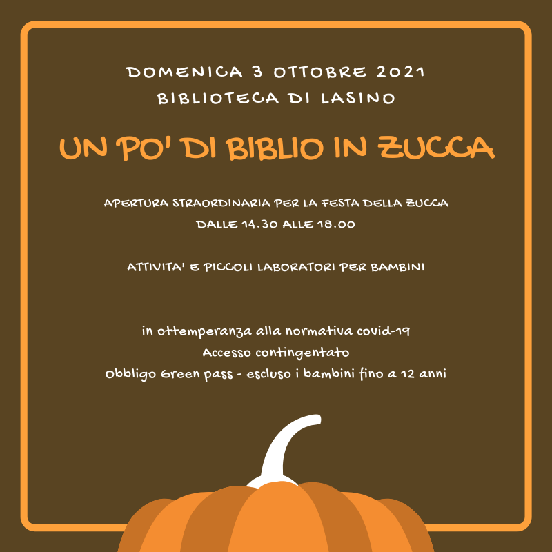 La Biblioteca Valle di Cavedine animata dallo spirito partecipativo e comunitario che la contraddistingue partecipa alla tradizionale Festa della zucca con un'apertura straordinaria della sede di Lasino.