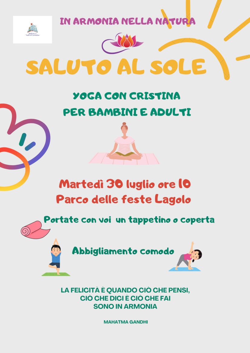 Venite con noi a Lagolo per lo speciale appuntamento di yoga in armonia nella natura , saremo accompagnati da Cristina e sarà una bellissima mattina di serenità ed equilibrio, per grandi e piccini!Ci vediamo a Lagolo Comune di Madruzzo martedì 30 luglio alle ore 10 al Parco delle feste. Portate con voi un tappetino e indossate abiti comodi.#labibliotecavaallagolo #yoganellanatura